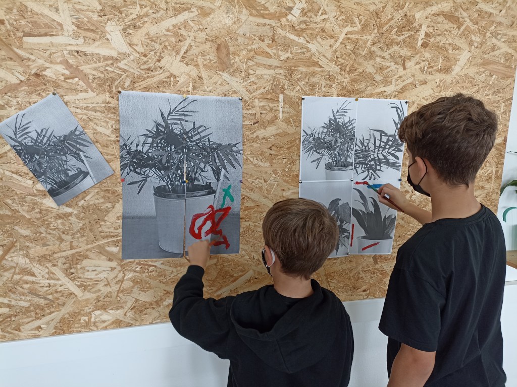 Está exposición fixémola por que nos parecía divertida a forma de facela, orixinal e interesante a maneira de crear as obras. Nos inspiramos no libro “ṔINTURAS EM COLABORAÇAO” de Pedro Almodóvar e Jorge Galindo. Neste proceso houbo moitos momentos graciosos é pasamolo moI ben pintando.
